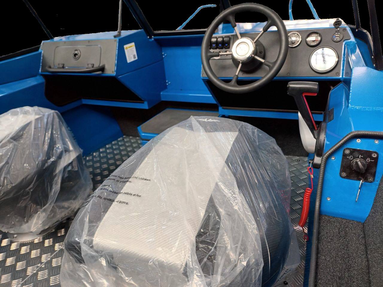 - Ветровое стекло в стиле FISH PRO, оргстекло, Сидения передние складывающиеся (морской винил под карбон),